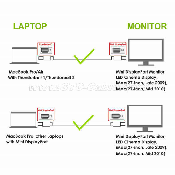 - Please Note: it’s not a thunderbolt cable but a Mini DP to Mini DP cable, it DOES NOT work with iMac (2011-2014 Version)! It connect Macbook/Mac Mini or other laptop equipped with mini display port to iMac (2009-2010 Version), please check as the pictures shown.