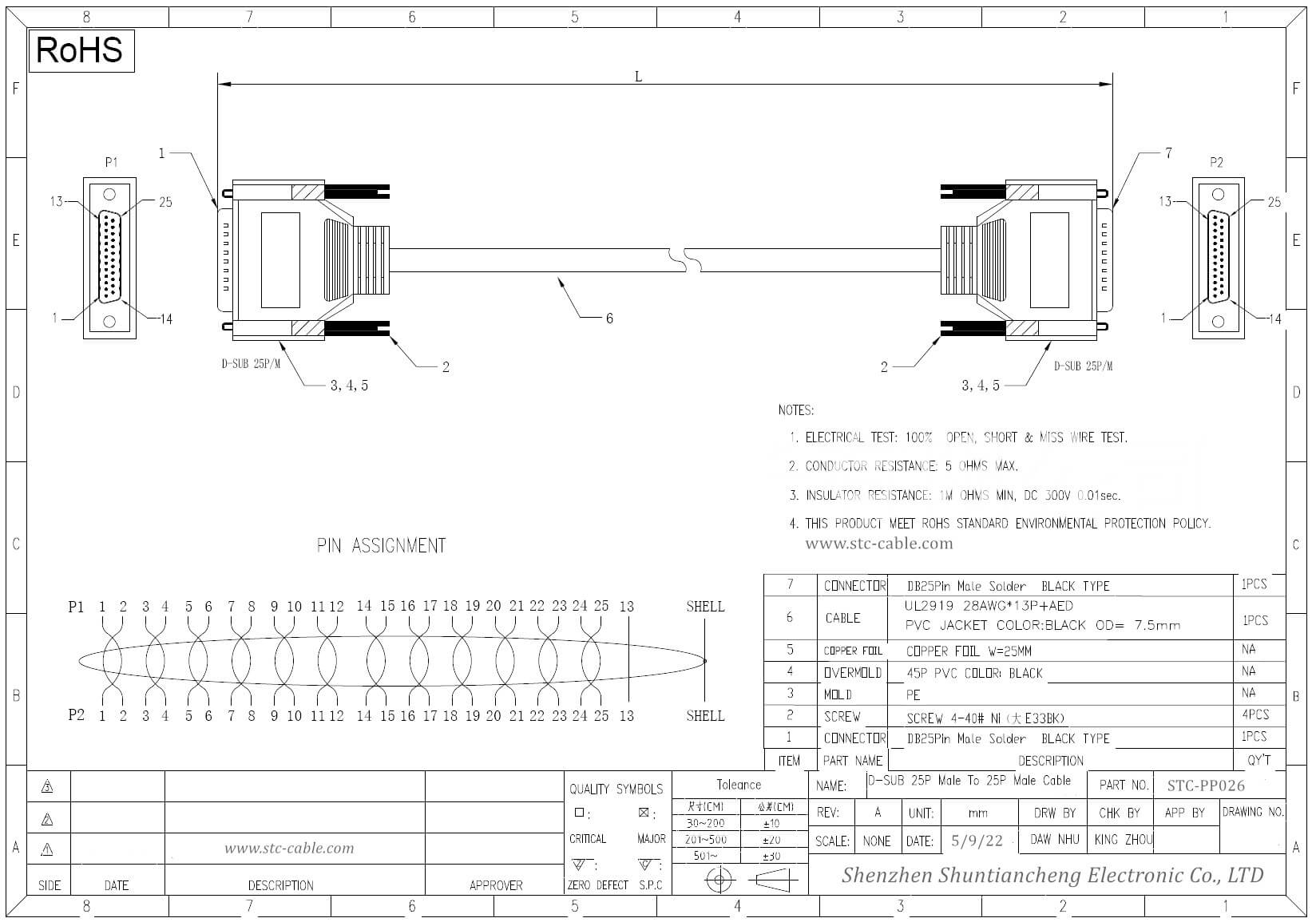 DB25 M/M Extension Straight Thru Molded Cable1> Designed for RS-232 serial or parallel applications. Easily connect your printer, modem, or other DB25 device to a switch box. 2> DB25 Male-to-female cables are designed for RS-232 serial or parallel extension applications. 3> Connect your printer, modem, or other DB25 serial/parallel devices to a switch box. 4> Each cable is constructed with molded connectors and foil shielding for EMI/RFI protection. 5> Fully molded connectors with thumbscrew provide you with a quick and easy connection. 6> Wiring straight through pin-to-pin. 7> Connectors: DB25 Male to DB25 Male