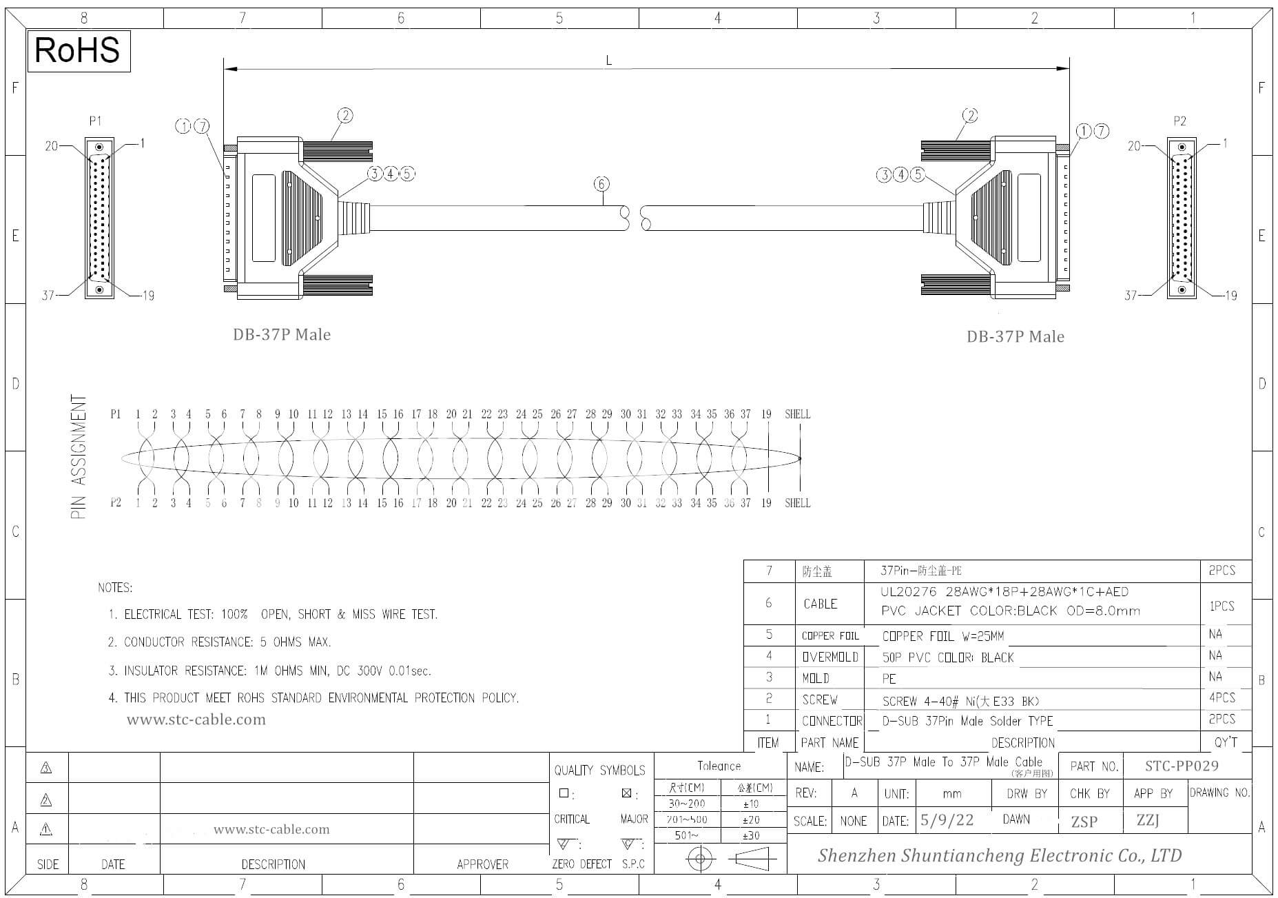 - Straight-through design: Pin-Out: 1-1 2-2 3-3,……, 8-8 37-37 G-G.