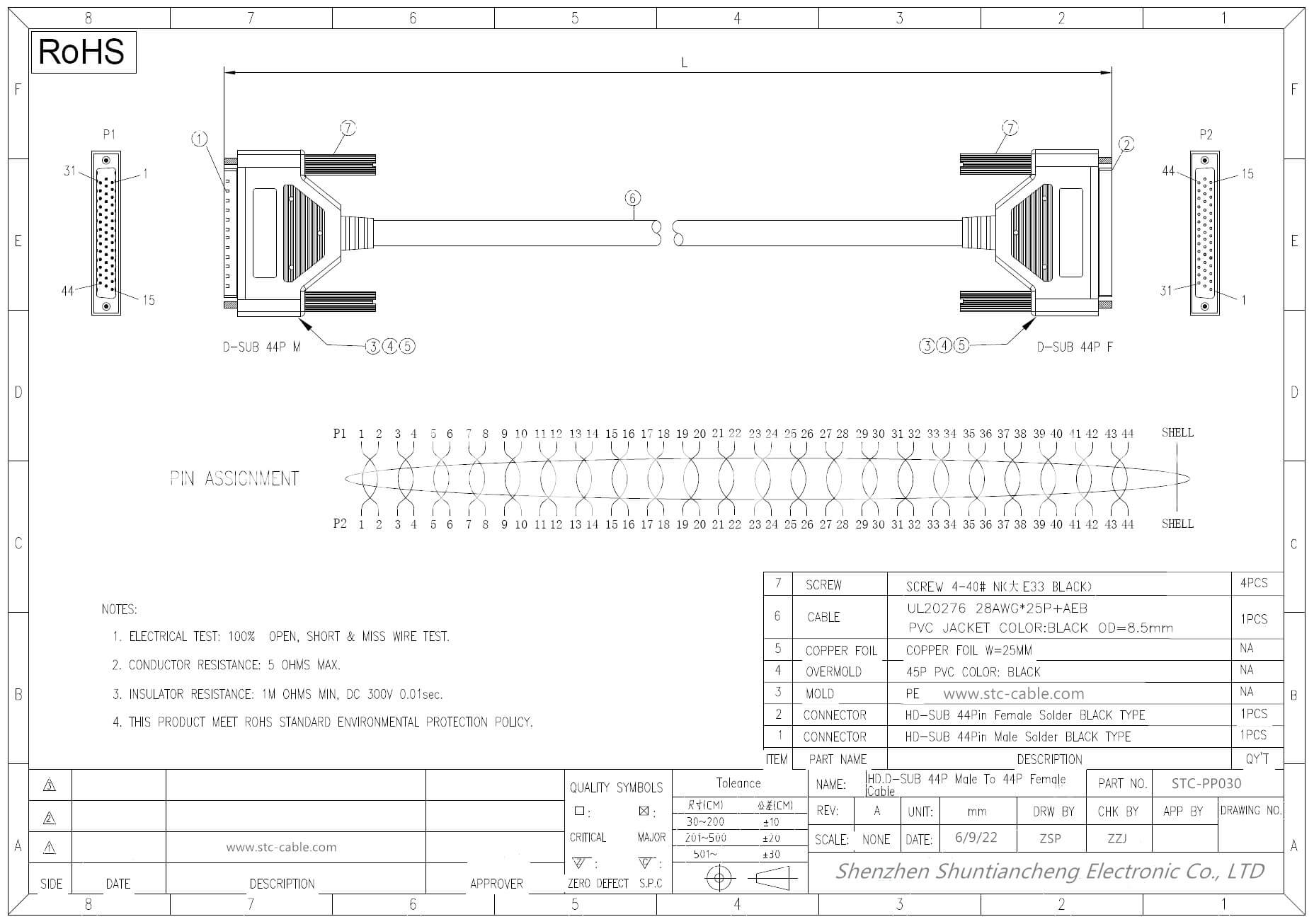 D-SUB 44Pin cable DB 44Pin Male to Female Cables