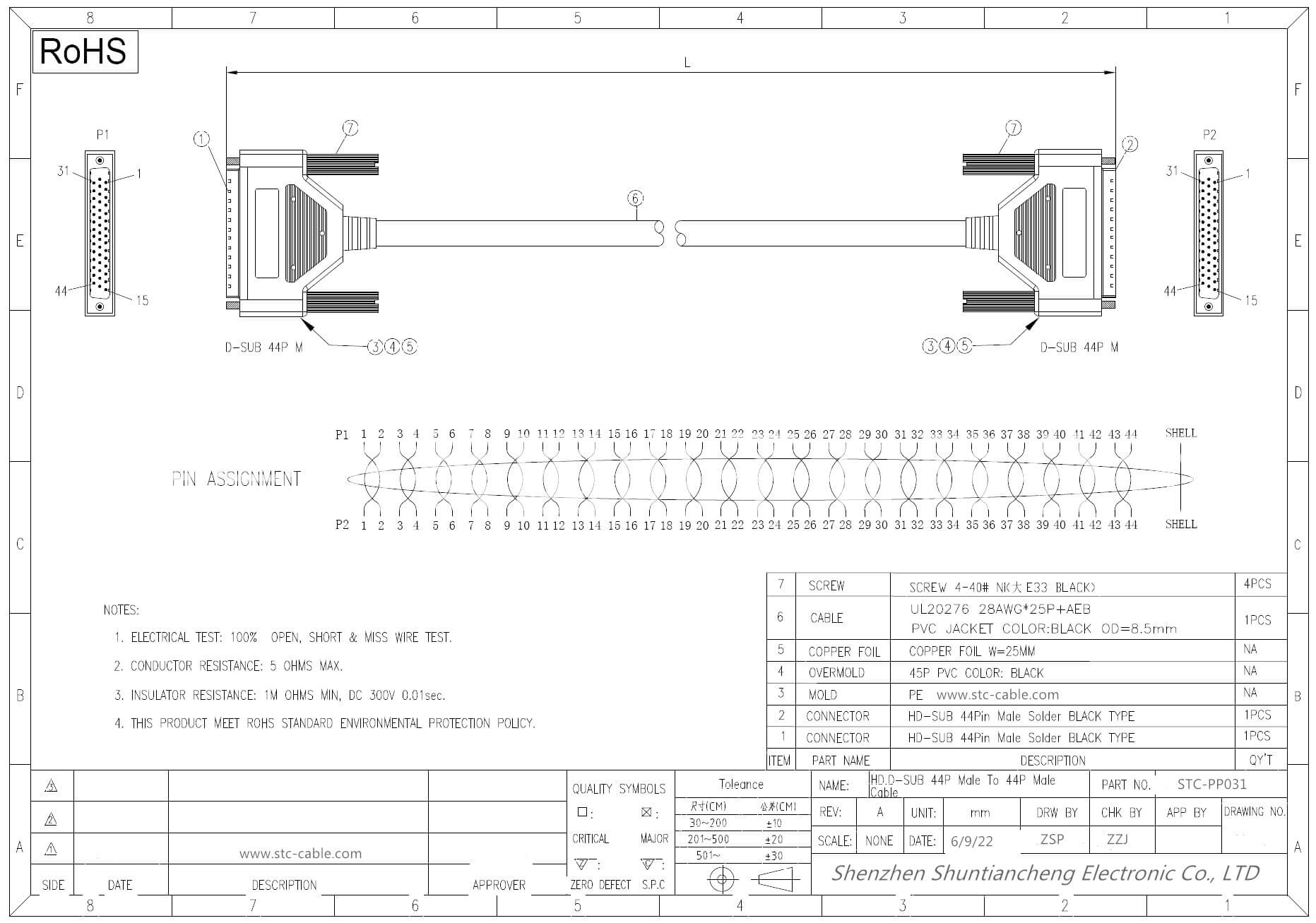 44-Pin High-Density D-Sub cable assemblies by STC provide the perfect I/O solution for your HD44 (DB44HD) d-sub-equipped devices. All of our 44-pin HD d sub cables come fully populated with gold-plated contacts and molded HD44 connectors and offer double shielding for excellent EMI suppression.