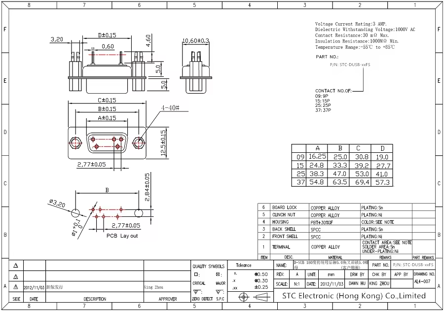 b) Dielectric Withstanding Voltage: 1000V AC c) Insulation Resistance: 1000MΩ/Min d) Contact Resistance: 30mΩ/Max e) Operaion Temperature: -20℃~+85℃ |