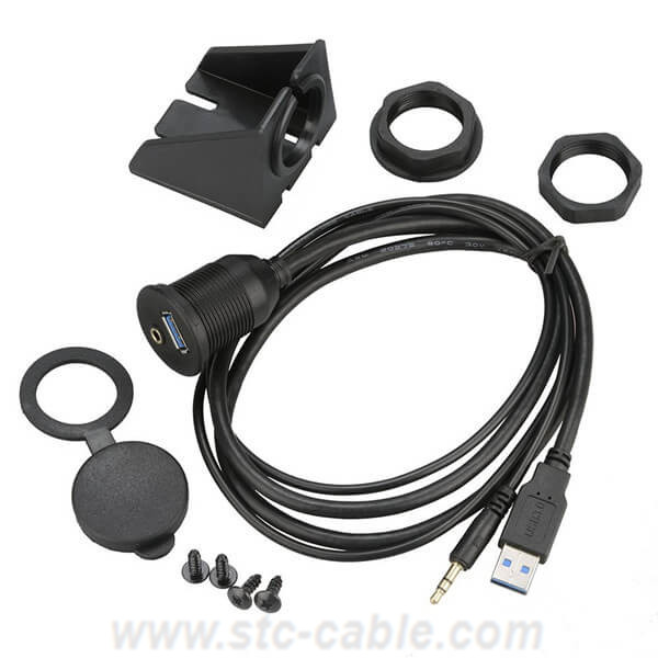Car Mount Flush CableThe STC-H013 USB 3.0 & 3.5mm Car Mount Flush Cable, This STC cable is designed for in-car but can be used for any application, such as bike, marine, etc. Use an existing hole or cut a hole in your dashboard and clip in the socket to flush mount it to your vehicle's dash. Bracket included allowing mounting of socket on your car's dashboard. Works with vehicles with 3.5mm AUX or USB 3.0 Input for extension/mount. Water Proof Mount Rubber cover, Ideal for newer aftermarket head units such as Pioneer, Kenwood, and Alpine that feature a rear USB input. The Stccabe.com Advantage