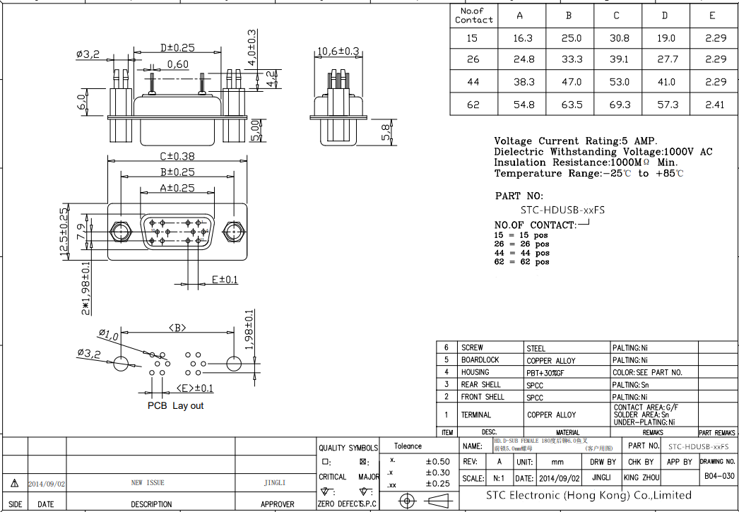 Shell SPCC,Plated Ni Housing PBT +30% G/F, Color: Black / Blue HOOD NA NUT Steel (If have) |