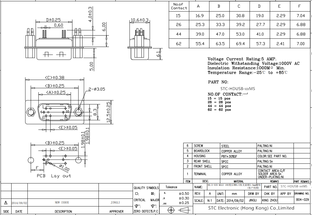 - HD-SUB DB 15/26/44/62Pin Male Connector 180 degree for PCB.