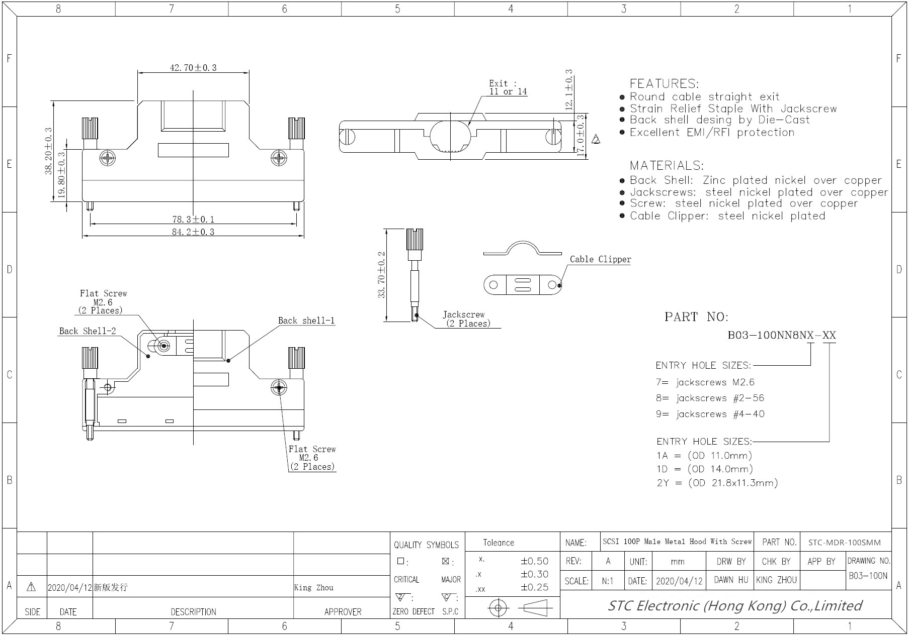 MDR 100 Pin Male connector pitch=1.27mm Solder Type With Metal Hood, MDR male 100 pin solder connection