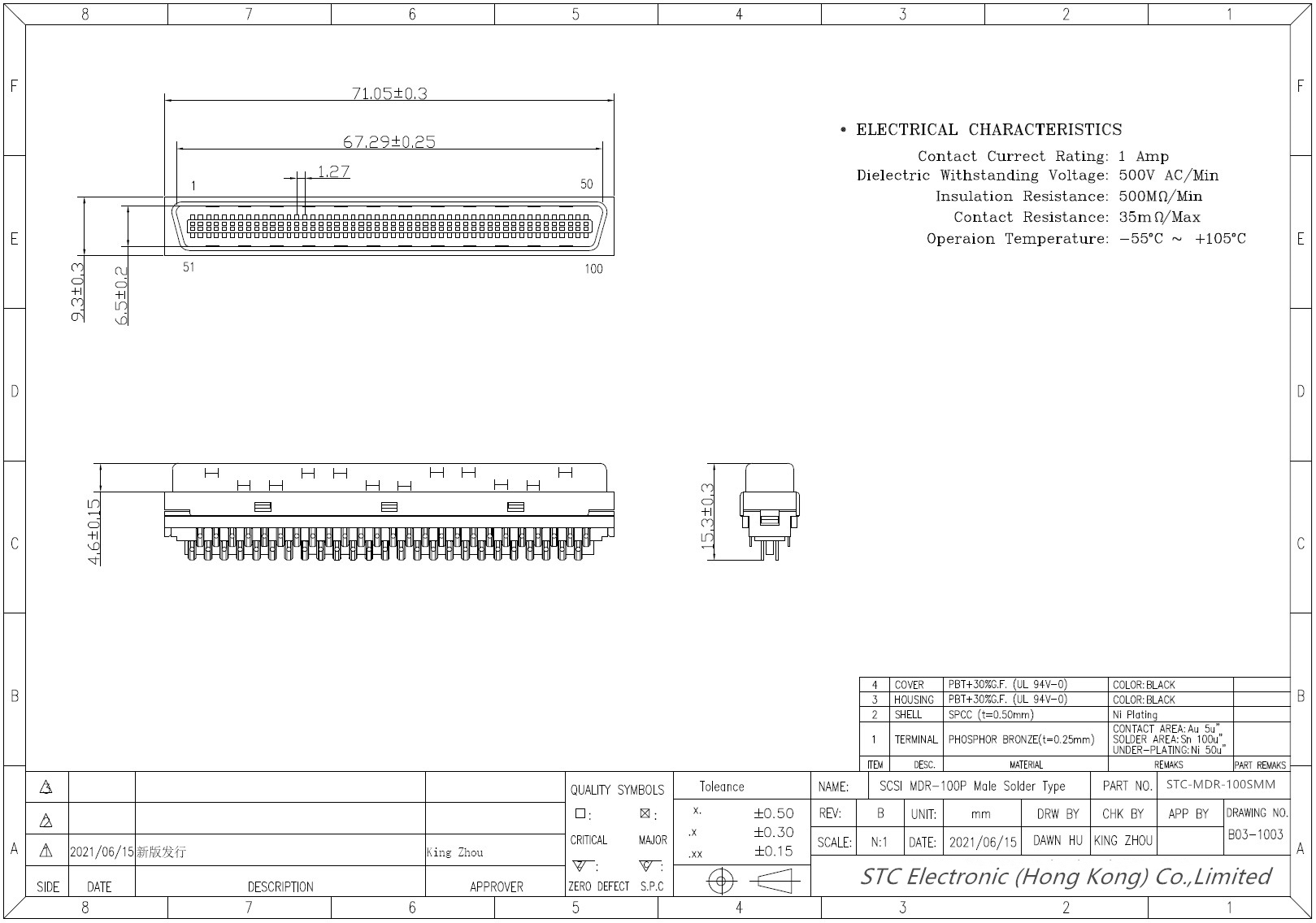 Shell SPCC, Plated Ni Housing PBT +30% G/F Cover LCP + 30% G/F HOOD Zinc Metal Color Black |