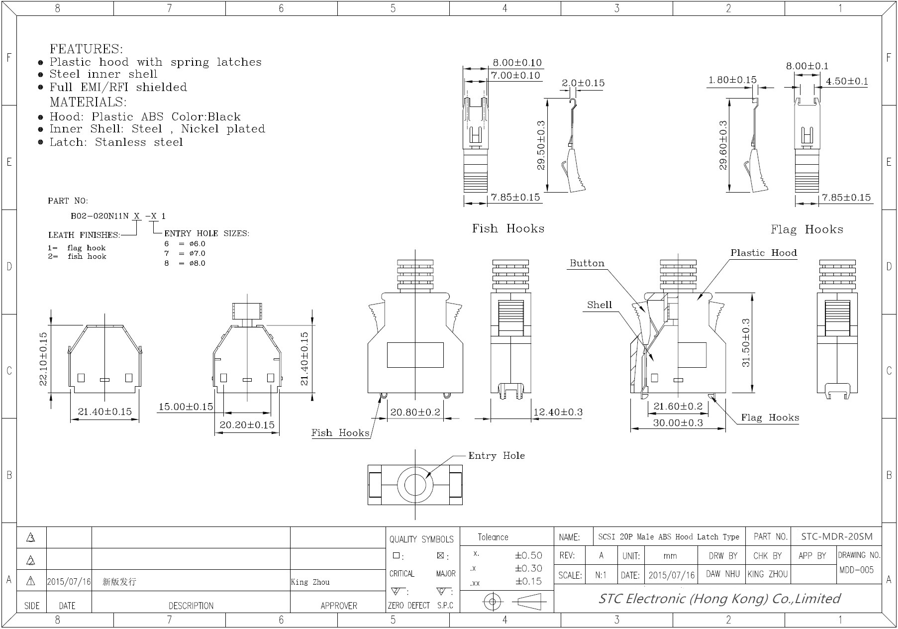 Shell SPCC, Plated Ni Housing PBT +30% G/F Cover LCP + 30% G/F HOOD ABS Color Black/Begi |