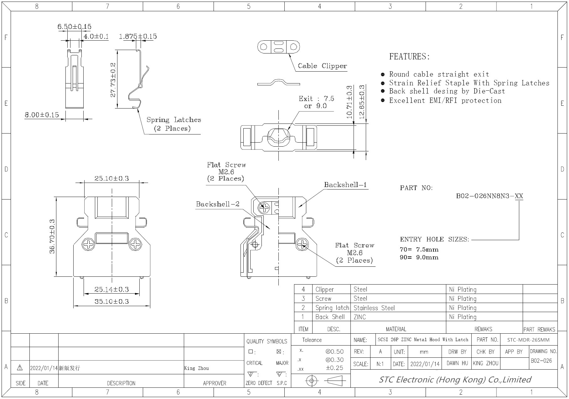 Shell SPCC, Plated Ni Housing PBT +30% G/F Cover LCP + 30% G/F HOOD Zinc Metal Color Black |
