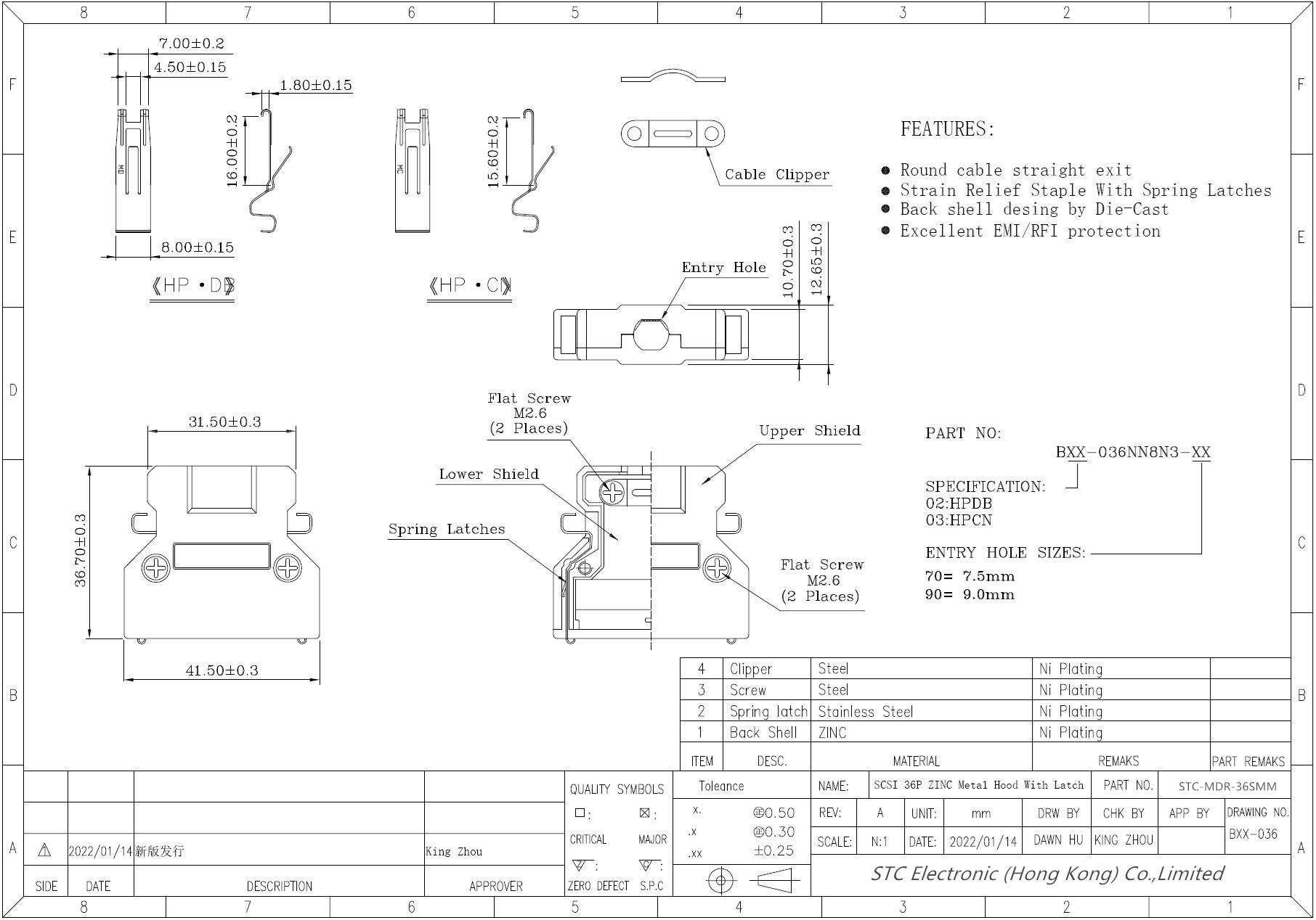 Shell SPCC, Plated Ni Housing PBT +30% G/F Cover LCP + 30% G/F HOOD Zinc Metal Color Black |