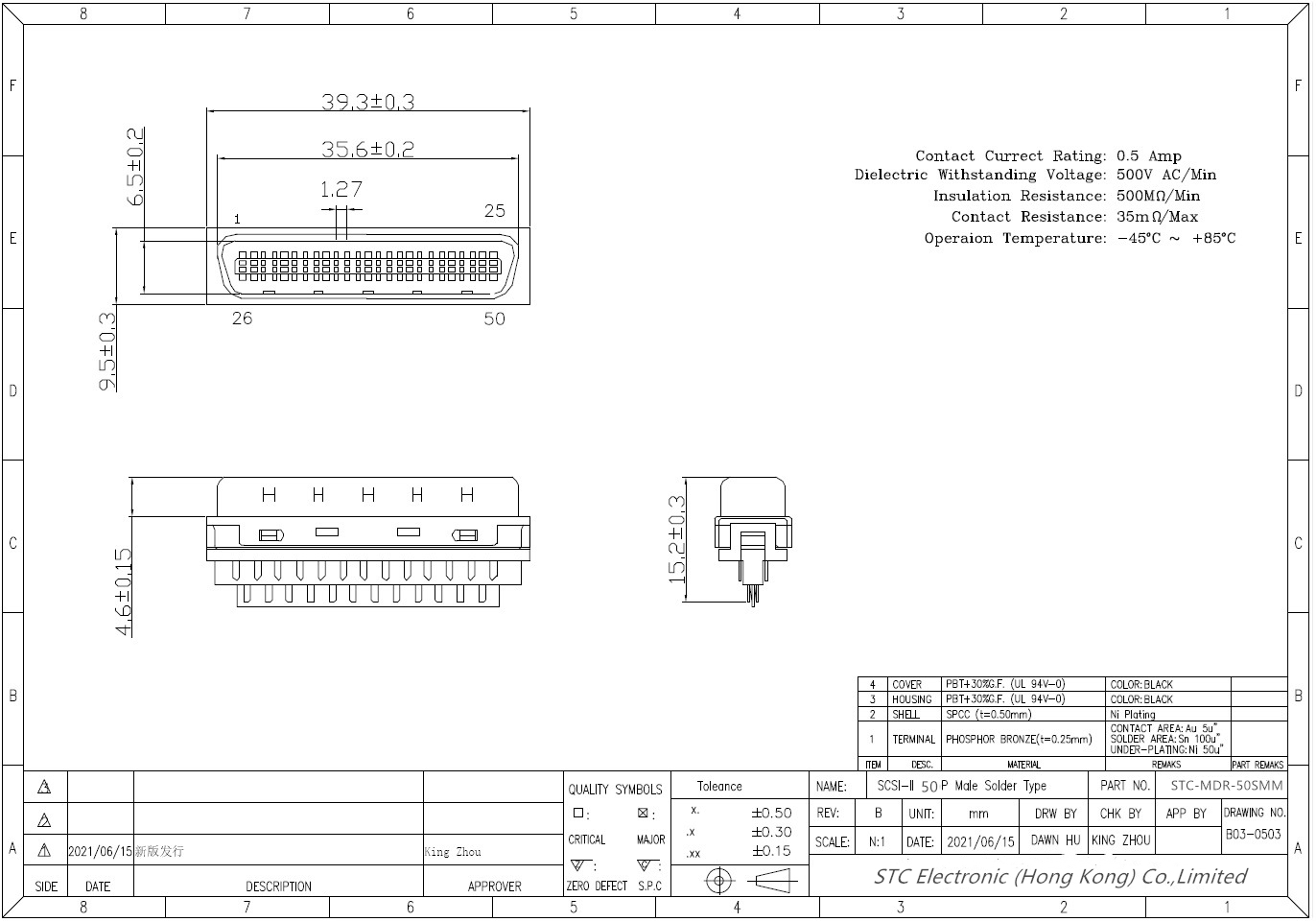 MDR 50 Pin Male connector with ABS Hood pitch=1.27mm Solder Type, MDR male 50 pin solder connection