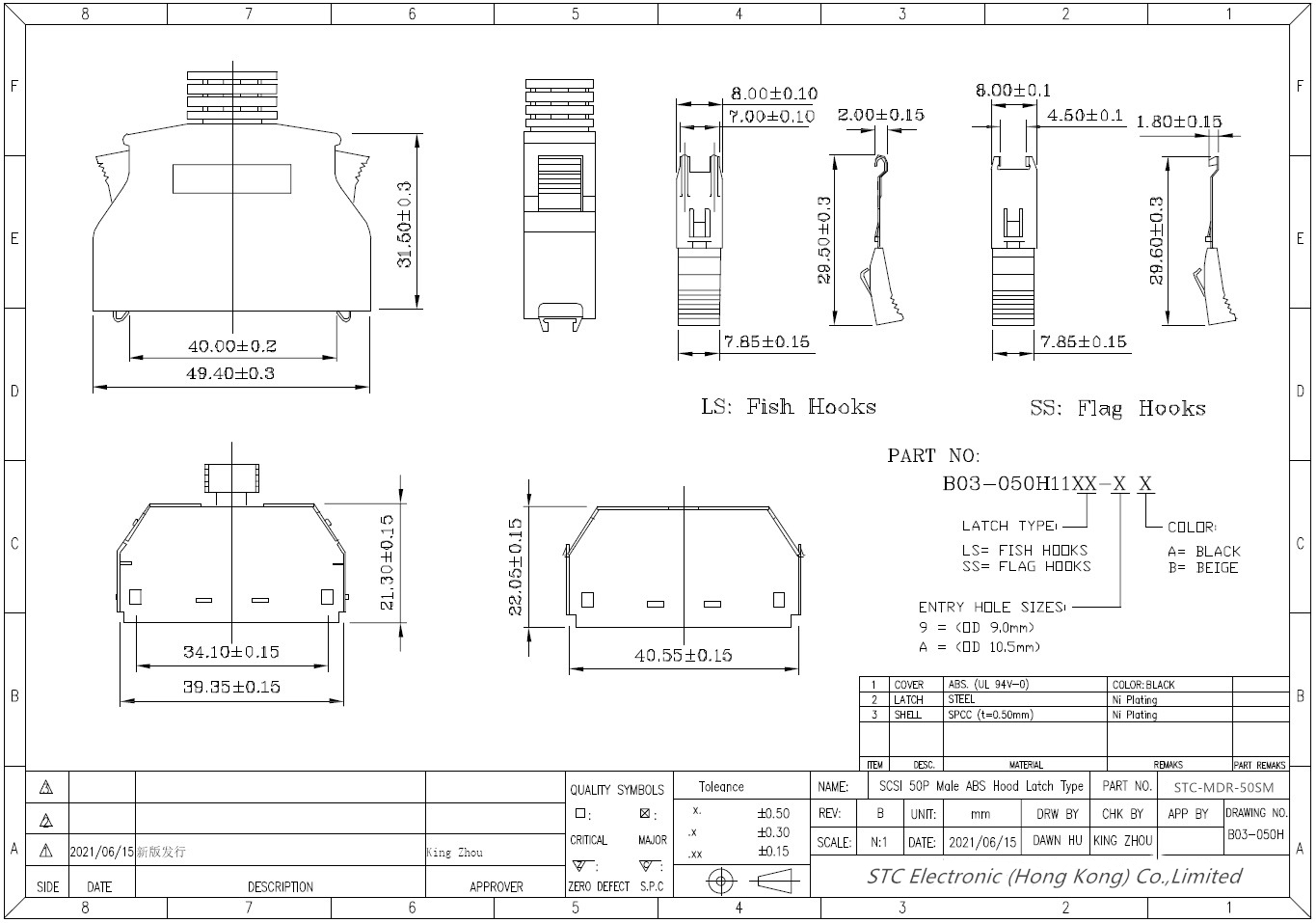 Shell SPCC, Plated Ni Housing PBT +30% G/F Cover LCP + 30% G/F HOOD ABS Color Black/Begi |