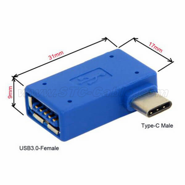 USB-C Type C to USB 3.0 Female OTG AdapterUSB-C Type C to USB 3.0 Female OTG Adapter Right Angled 90 Degree, for Macbook & Chromebook, Reversible Design Type C Male Connector to A Female Data Adapter, With OTG Function, Support 5Gbps data rating, Work for Tablet & Hard Disk Drive & Flash Disk & USB Mouse etc. Power Output: DC 5V/3A,