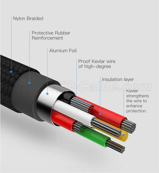 First of all, in terms of wire, the better the data line, the thicker the internal wire will be, the higher the current can be passed, and the aluminum foil shield and metal woven mesh will ensure the stability.