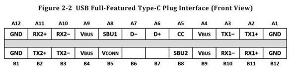 As can be seen from the above figure, there are 12 pins on the USB Type C interface. The pins are arranged as shown below: