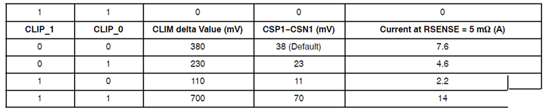 Peak overcurrent protection value for 5 mΩ sense resistor (reverse overcurrent protection)