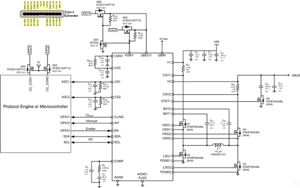 The NCP81239 supports a wide input voltage range, provides a dynamic switching frequency from 150 kHz to 1.2 MHz, integrates four MOSFET drivers, uses dual edge current mode control, supports output pre-bias startup, and adaptive dead time control prevents shoot-through, independent Input and output current sensing, output voltage (range 0 to 20V) can be programmed via I2C, integrated with overvoltage, undervoltage, overcurrent and accurate overload protection, as well as protection for 5 V Vconn supplies .
