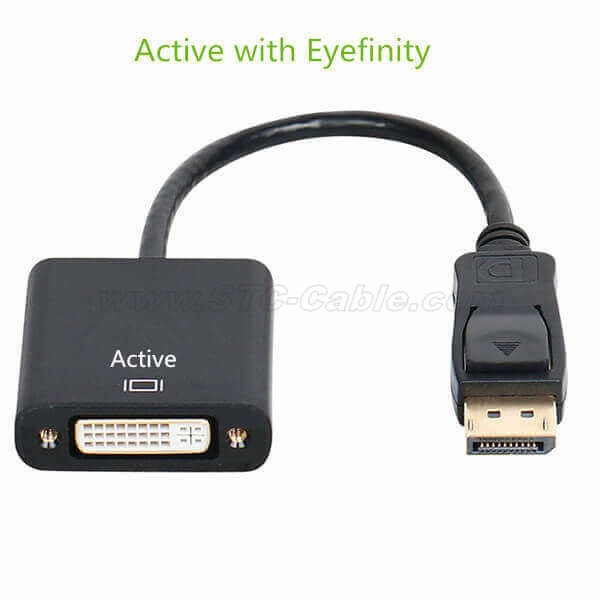 Now, the active single-link DVI adapter comes. STC-Cable.com launched the DP-DVI active adapter (Active Mini DisplayPort to DVI Adapter/Active Displayport to HDMI Adatper Cable/Active Mini Displayport to HDMI Adapter 4K/DisplayPort to VGA Active Adapter/Mini DisplayPort to VGA Active Adapter). Compared to Apple's dual-link adapter, its power consumption and complexity are greatly reduced: only one half of the TMDS transmitter is required to drive a single-link DVI interface, and the power required to connect a DP interface after hardware simplification is only 3.3V@500mA, no USB auxiliary power supply required.