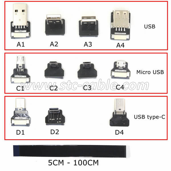 - Flat soft ribbon micro USB female to FFC USB female extension cable