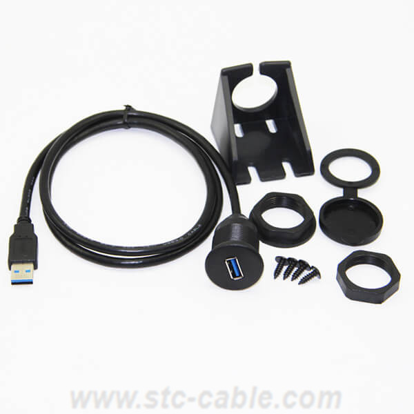 Car Boat Dash Panel Flush Mount cableThe STC-H010 Car Boat Dash Panel Flush Mount USB 3.0 extension cable This flush mount cable is designed for cars, boats, and motorcycles. Mount cable can be used above the base of the car's dashboard or on the other dashboard, such as a boat, or motorcycle. Use an existing hole or cut a hole on your dashboard and clip in the socket to flush mount it to your vehicle's, boat, and motors. A mounting bracket that can be used to mount the USB connector without drilling holes in the vehicle. Snap the cable into the bracket and mount it wherever your installation demands. 1-meter long cable, waterproof mount rubber cover. Ideal for extending and accomplishing the data transfer in your car, boat, or motorcycle, support very easy access to your accessory inputs. The Stccabe.com Advantage