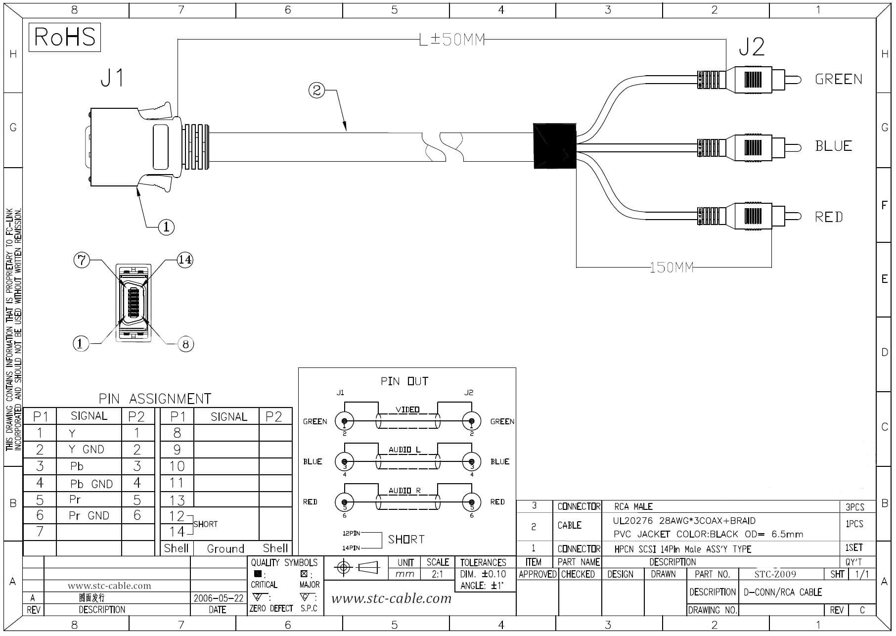 - SCSI 14 Pin MDR HPCN Solder Plug Connector 14 pin mini d ribbon MDR14 pin to 3 ports RCA video Splitter Cable assembly.