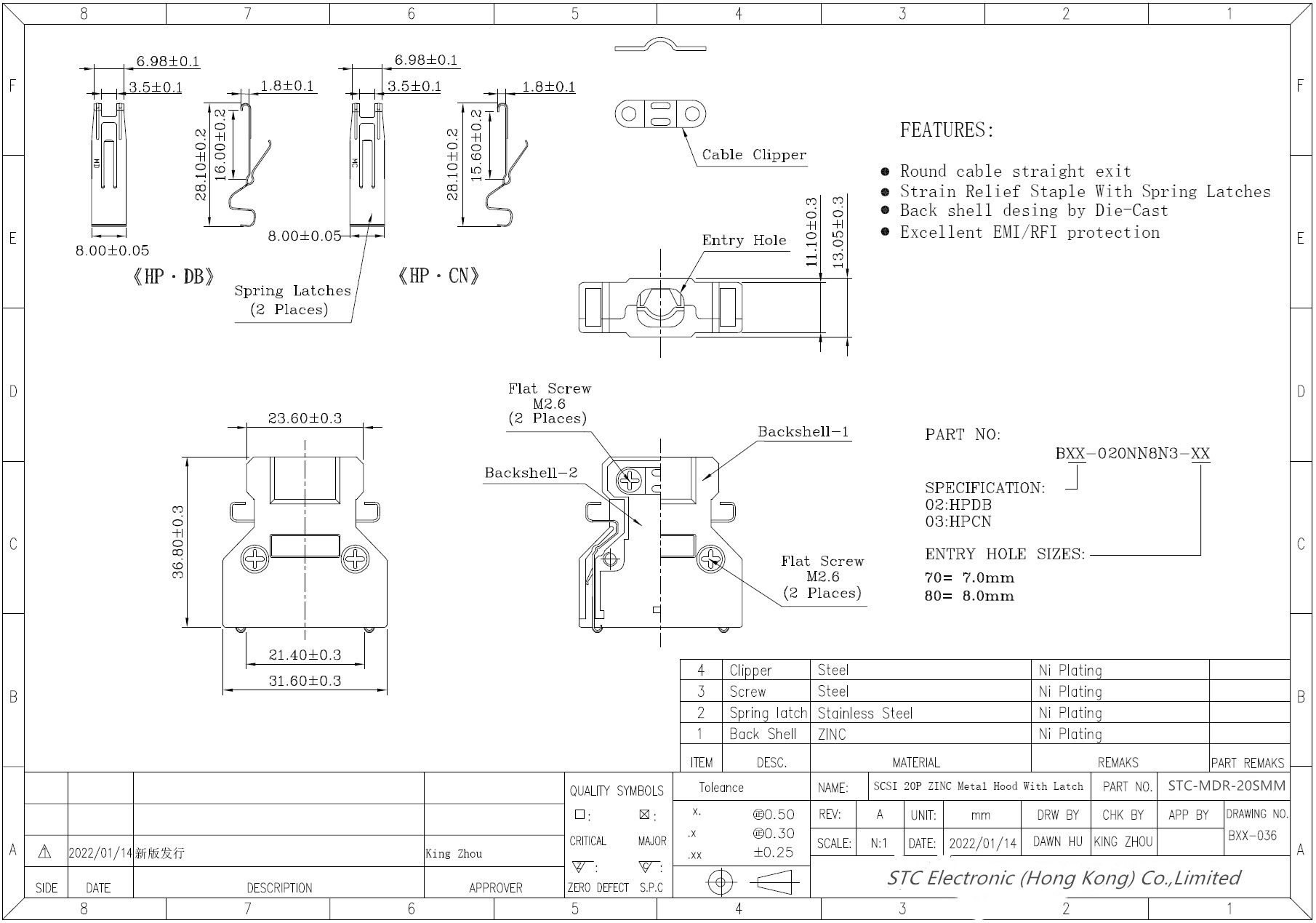 Shell SPCC, Plated Ni Housing PBT +30% G/F Cover LCP + 30% G/F HOOD Zinc Metal Color Black |