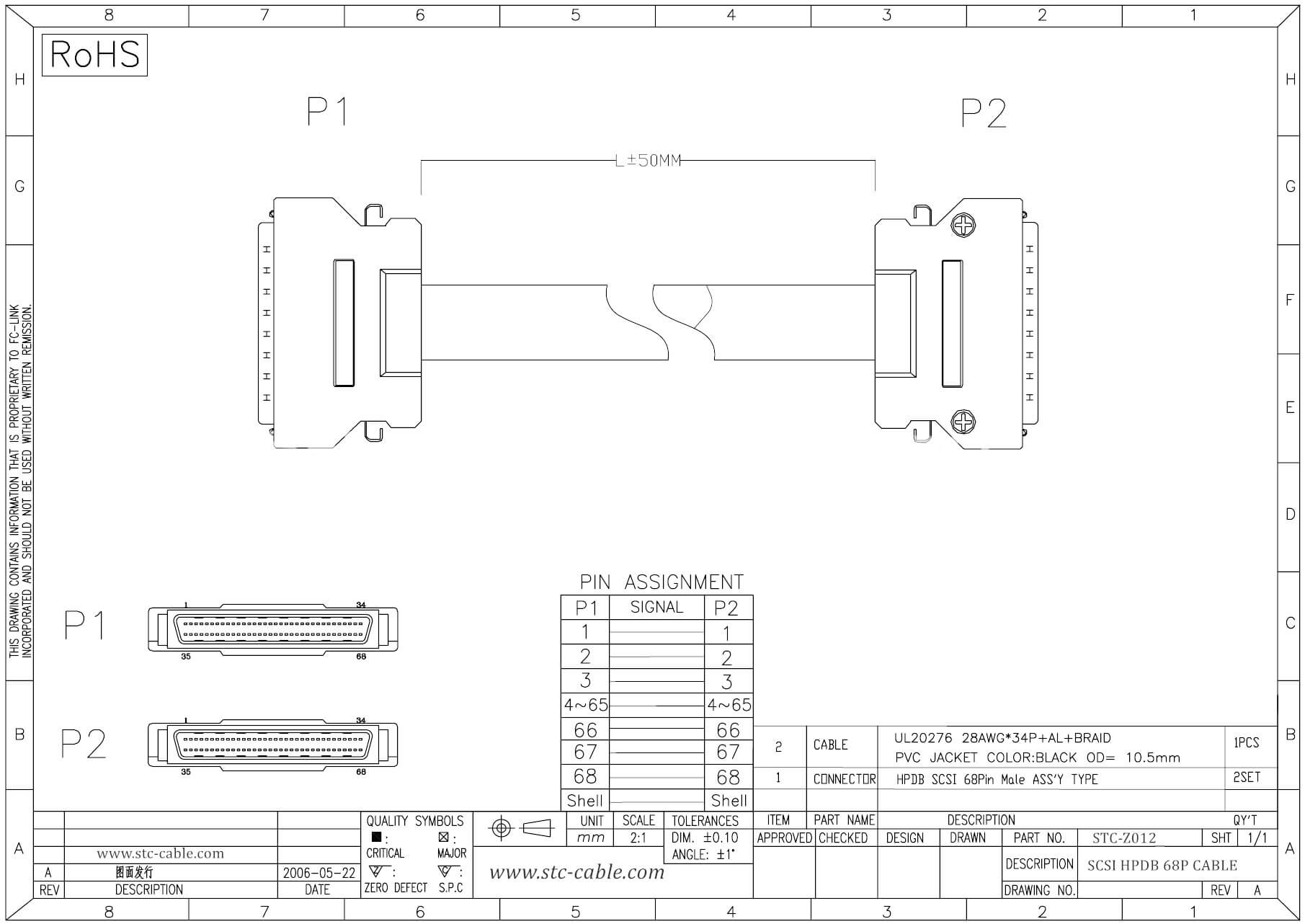 - Connector A: 1*SCSI-3 HPDB 68 Pin Male with a metal shell.