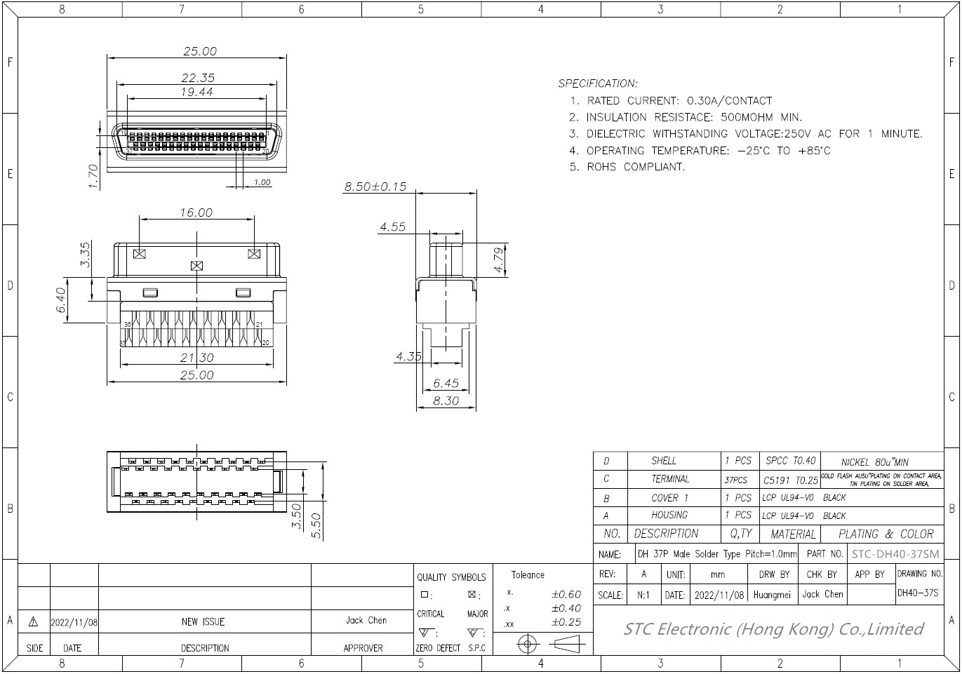 - DH series DH40-37S male pitch=1.0mm 37 Pin male connector for cable.