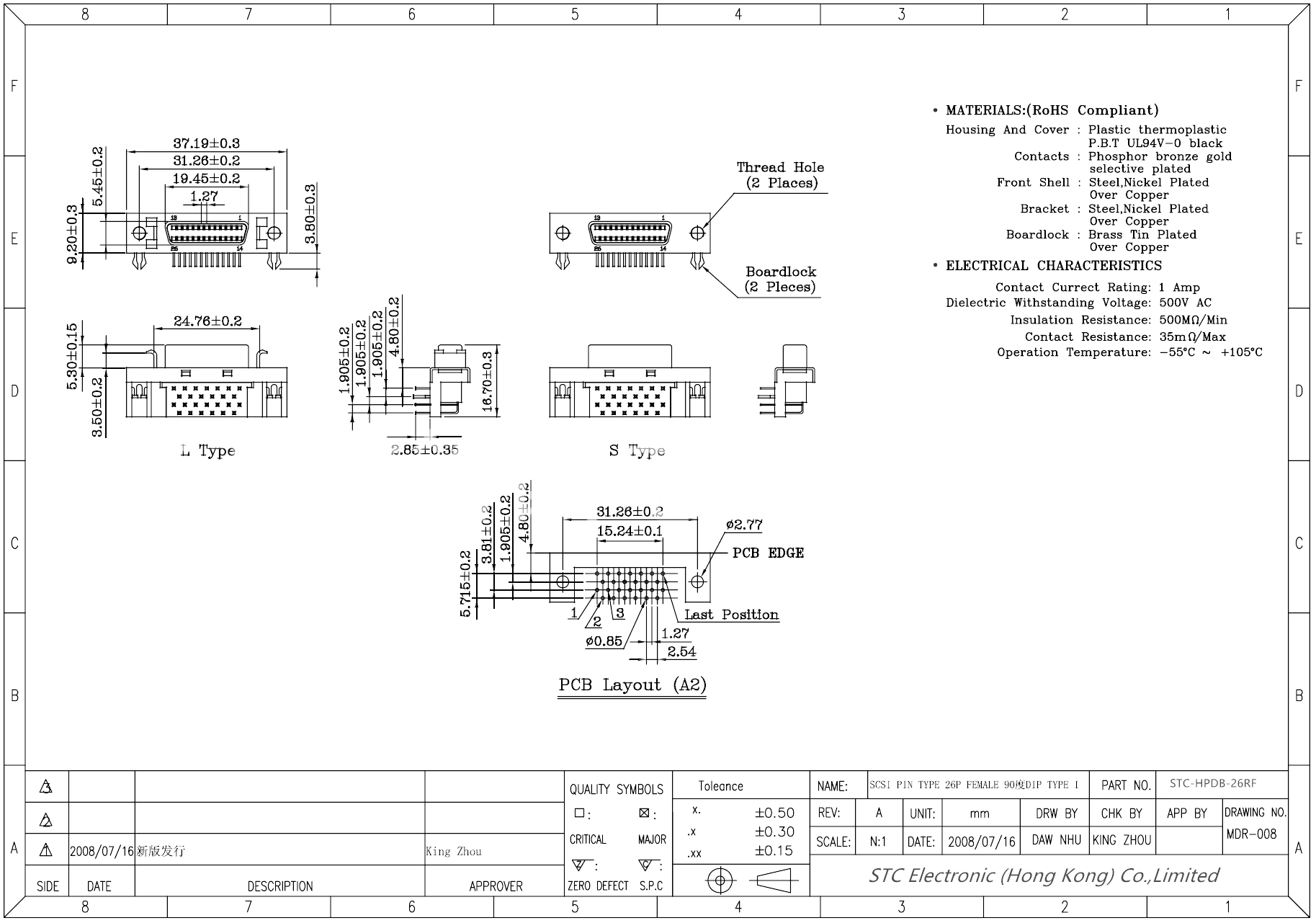 HPDB SCSI 26 Pin female connector pitch=1.27mm 90 degree right angle dip Type, HPDB SCSI-2 26 Pin female connector for PCB.