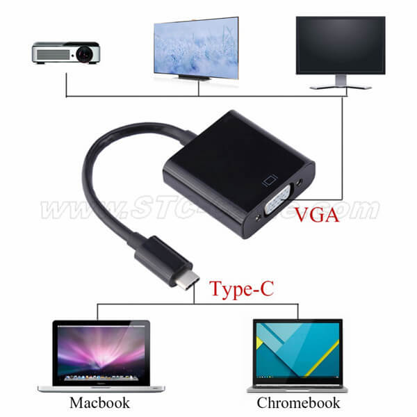 USB 3.1 Type C to VGA Adapter1.USB C To VGA Adapter. Compatible with Devices with USB-C/Thunderbolt 3/Type-C Port: New MacBook 2015,2016, MacBook Pro (2016/2017), Dell XPS 13(9350/9360), Dell XPS 15, Dell Inspiron 13-700, Lenovo Yoga 900/900s, Acer Predator 15, Chromebook Pixel, HP Spectre x360, HP Spectre x2 etc. * Currently NOT Support:NOT Support MHL mode phone/tablet,such as LG Google Nexus 5X/6P, LG Stylist/LG G6,LG V30,ZTE/ZTE max pro Phone etc. 2.USB-C To VGA Adapter allows you to mirror/extend video/image from your new laptops with USB-C Port to your tv/monitor/projector with Old VGA Port. Provide you Full High-Definition video/Crystal Image.Specially use for make a presentation or an external monitor in school/office/home. 3. Supports Resolutions up to 1080P @60Hz 1920*1200@60Hz (HD),800x600, 1024x768, 1280x768, 1280x800, 1280x960, 1280x1024, 1440x900, 1600x1200, 1680x1050, 1920x1080. Laptop resolutions up to 1920 x 1200 are easily achieved. 4. Plug and Play. No need driver to install. An Ideal VGA Adapter for New Devices with USB-C/Thunderbolt 3/Type-C USB-C (TYPE-C) To VGA Adapter▶ Compatible with most of laptops with USB-C Port