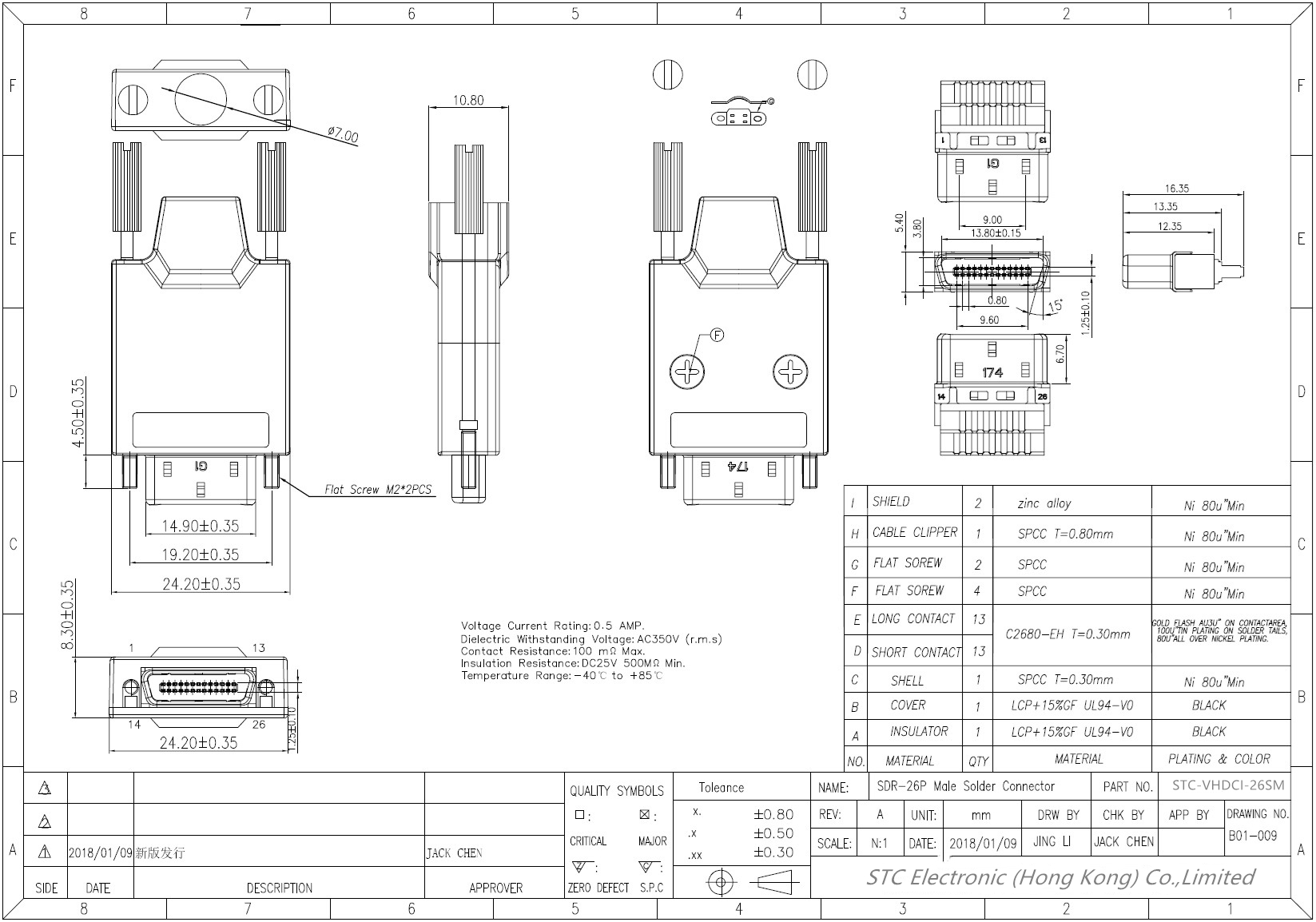VHDCI SDR 26Pin male connector VHDCI 26Pin pitch=0.8mm Solder Type SDR 26 Pin connector for cable.