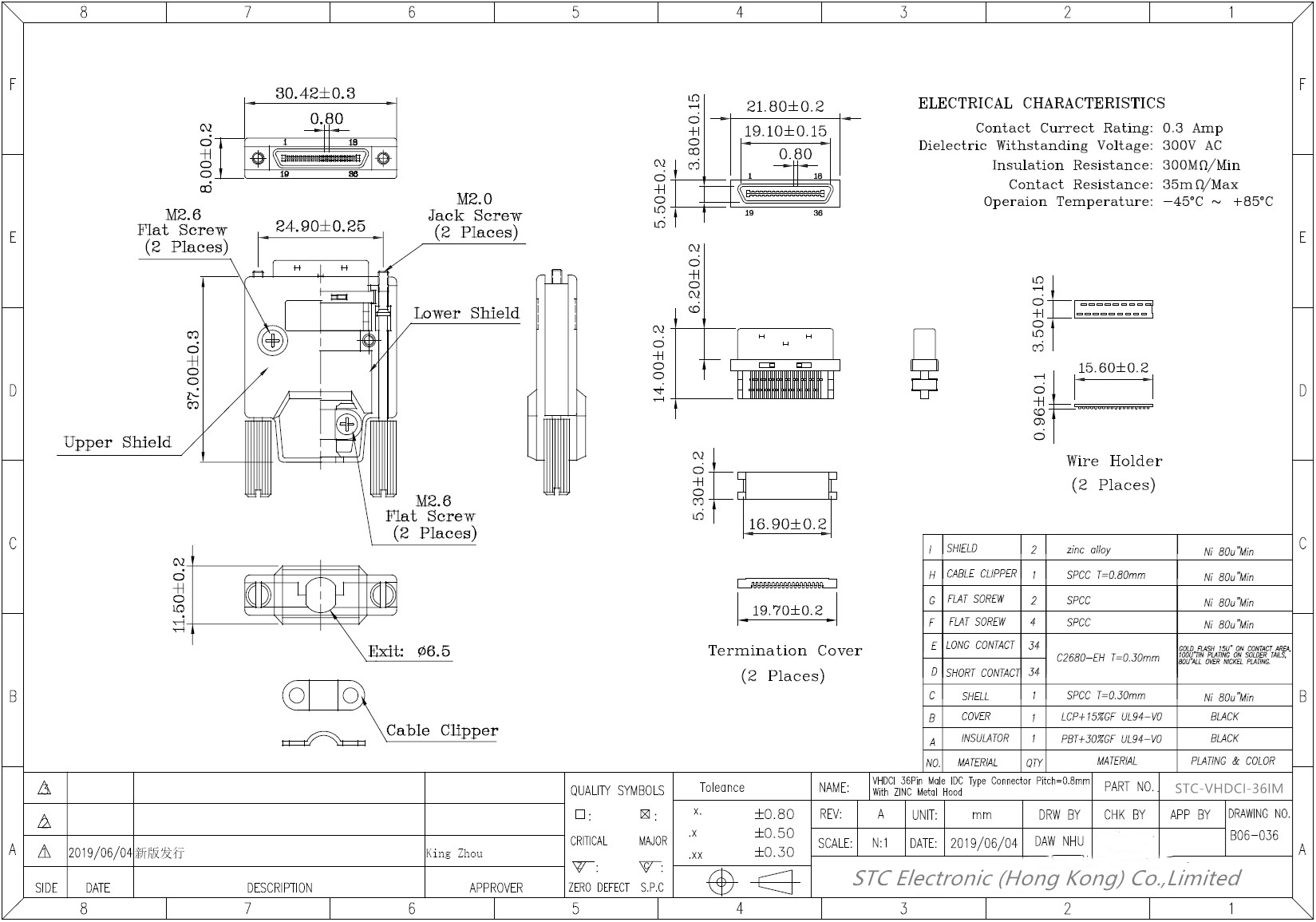VHDCI 36Pin Male connector pitch=0.8mm IDC Type Ultra Thin VHDCI 36 Pin male connector for cable.