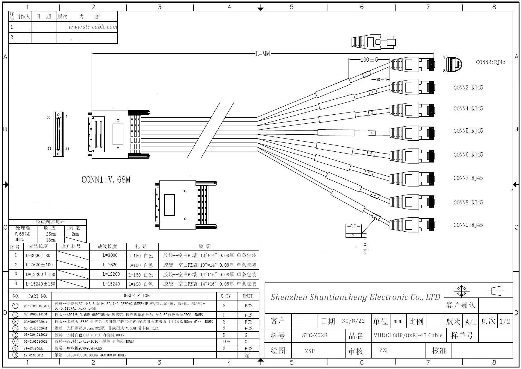 | Cable Length 10ft,15ft,25ft,50ft, or Customized