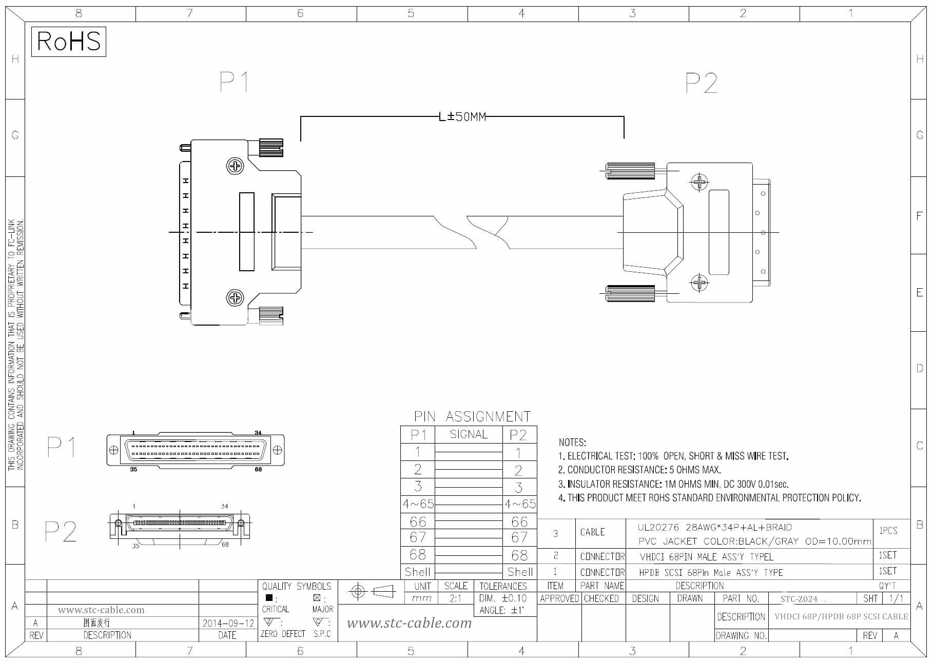 | Connector A 1 - VHDCI SCSI-68 Pin Male with Metal and screws